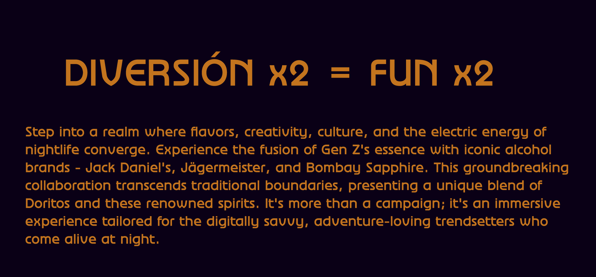 In this project we were tasked with creating a marketing campaign for Doritos, we had the freedom to choose the subject and the target audience etc. So I chose alcoholic beverages flavored Doritos. Some hated the idea some but others thought it's genius!